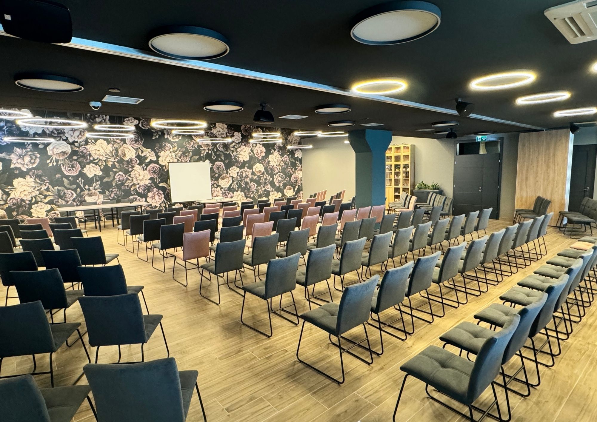Naša konferencijska sala može primiti do 250 sjedećih mjesta, a po potrebi je moguće podijeliti je u dvije manje sale, što omogućava istovremeno održavanje različitih događaja ili prilagodbu prostora prema veličini vaše grupe. Opremljena je modernom audiovizualnom tehnologijom, osiguravajući da svaka prezentacija, radionica ili sastanak prođe bez tehničkih poteškoća.